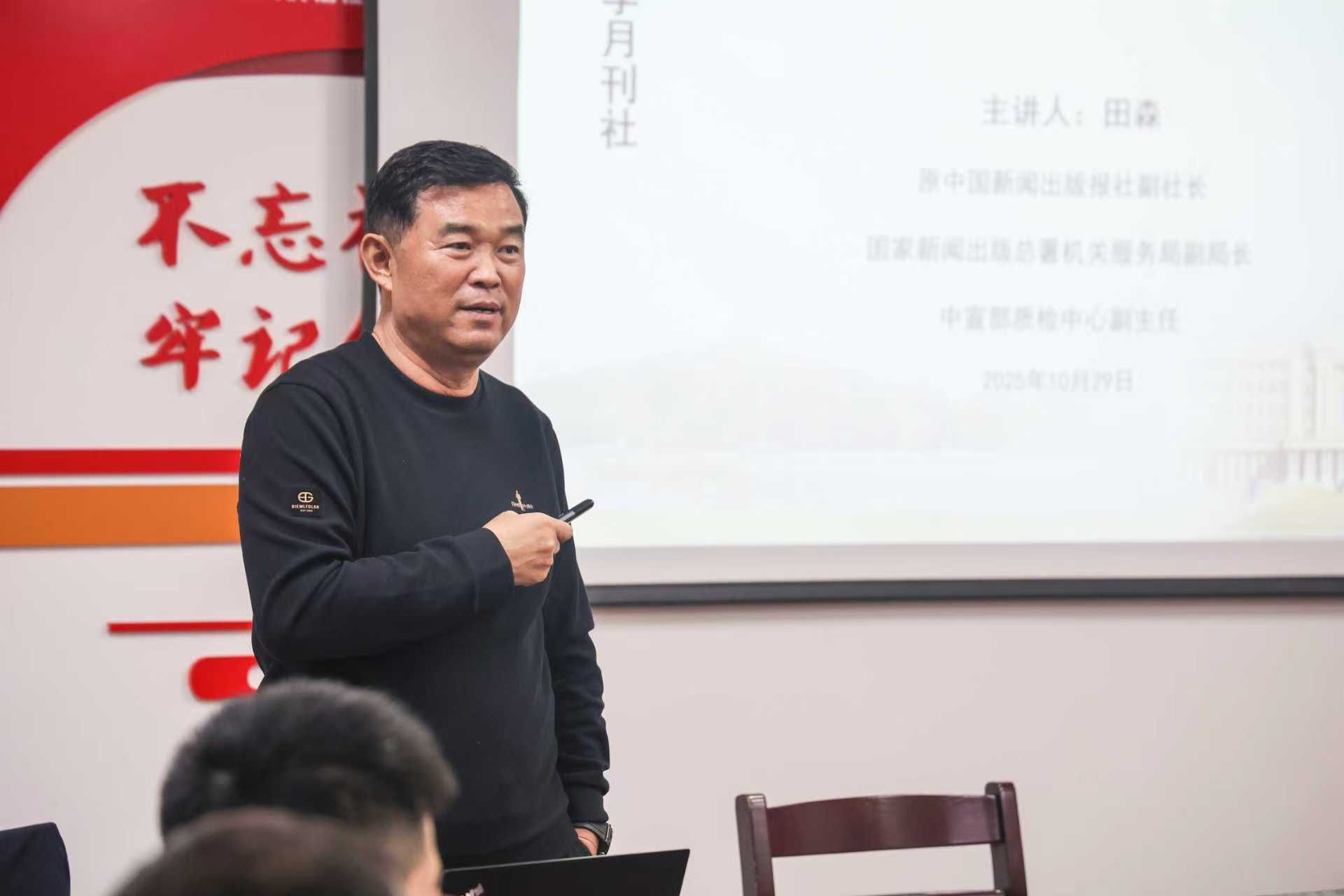 10月29日,浙江教学月刊社特邀原中国新闻出版报社副社长、国家新闻出版总署机关服务局副局长、中宣部质检中心副主任田森做客“博通讲座”,为社内全体员工作了题为《激活数智新引擎 构建出版新生态》的专题讲座。浙江教学月刊社社长、总编辑陈永华主持本次讲座。