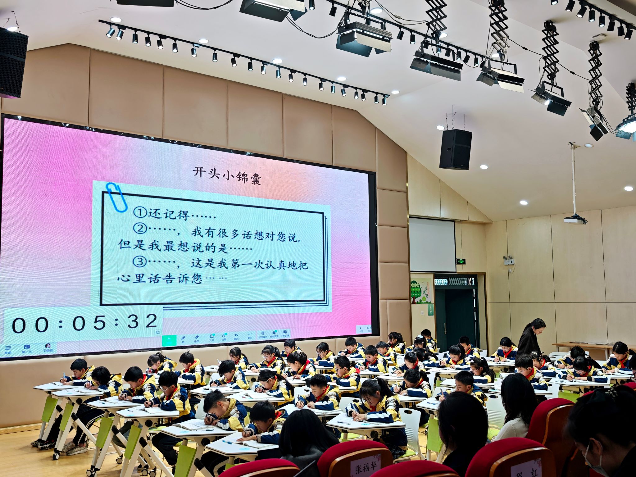 洋安小学徐梦玲老师执教六年级习作课《我的拿手好戏》,以“绝活我最靓”班级吉尼斯为真实情境,引导学生挖掘生活中的鲜活素材,充分调动了学生的表达热情;杭州市文澜小学王嘉毅老师带来五年级习作课《我想对您说》,以“洋安少年说”为载体,搭建起师生、亲子间的情感沟通桥梁,有效激发了学生的倾诉欲与表达欲。