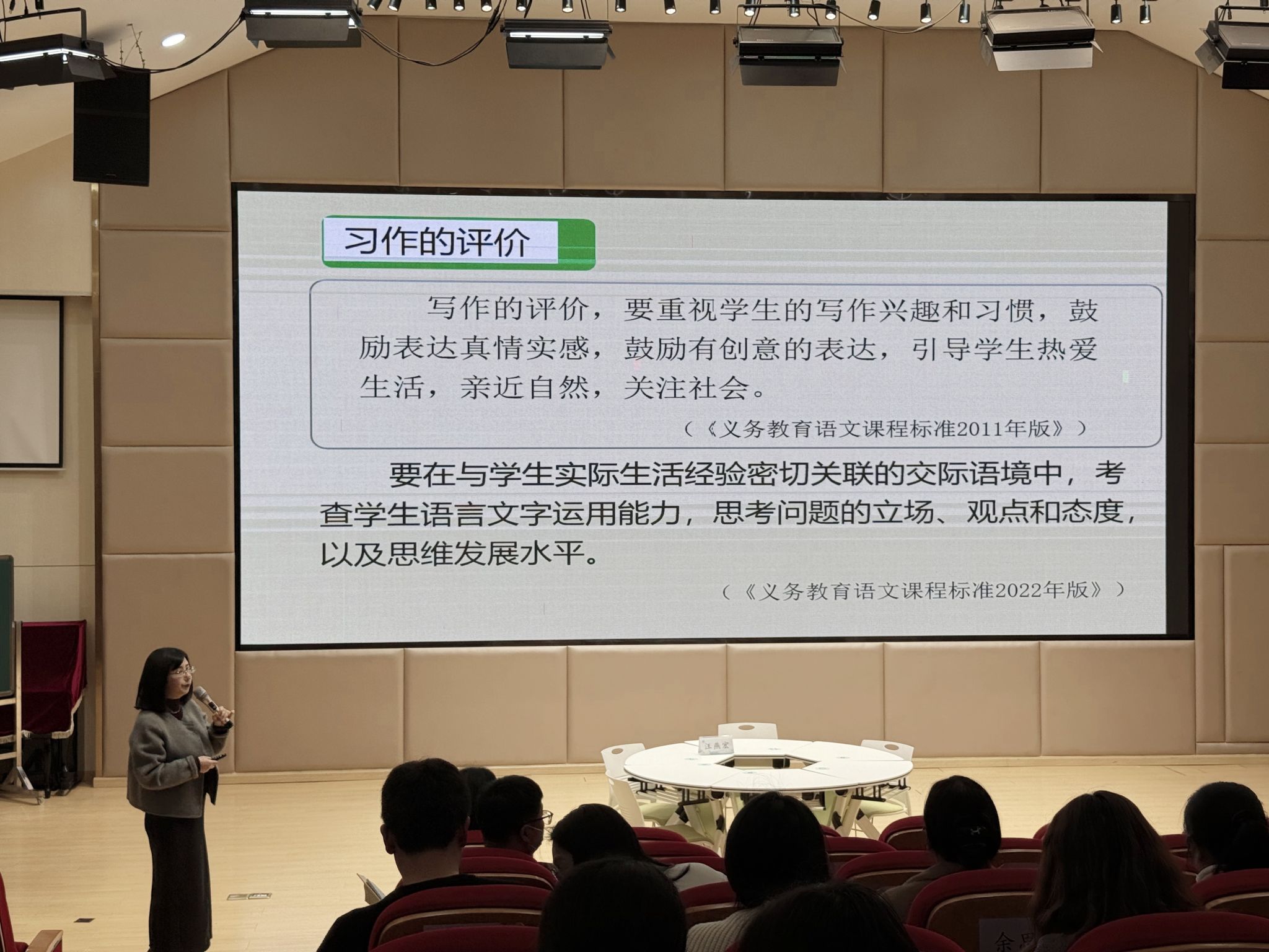 杭州市拱墅区教育研究院小学语文教研员、浙江省特级教师、正高级教师汪燕宏点评了《我想对您说》课堂,并围绕《学科实践视野下的习作教学探讨》这一主题开展了专题讲座。强调习作教学要紧扣课程标准与学段要求,凸显重点目标、覆盖全程指导、嵌入真实情境,构建“学教评”一致性的教学体系。